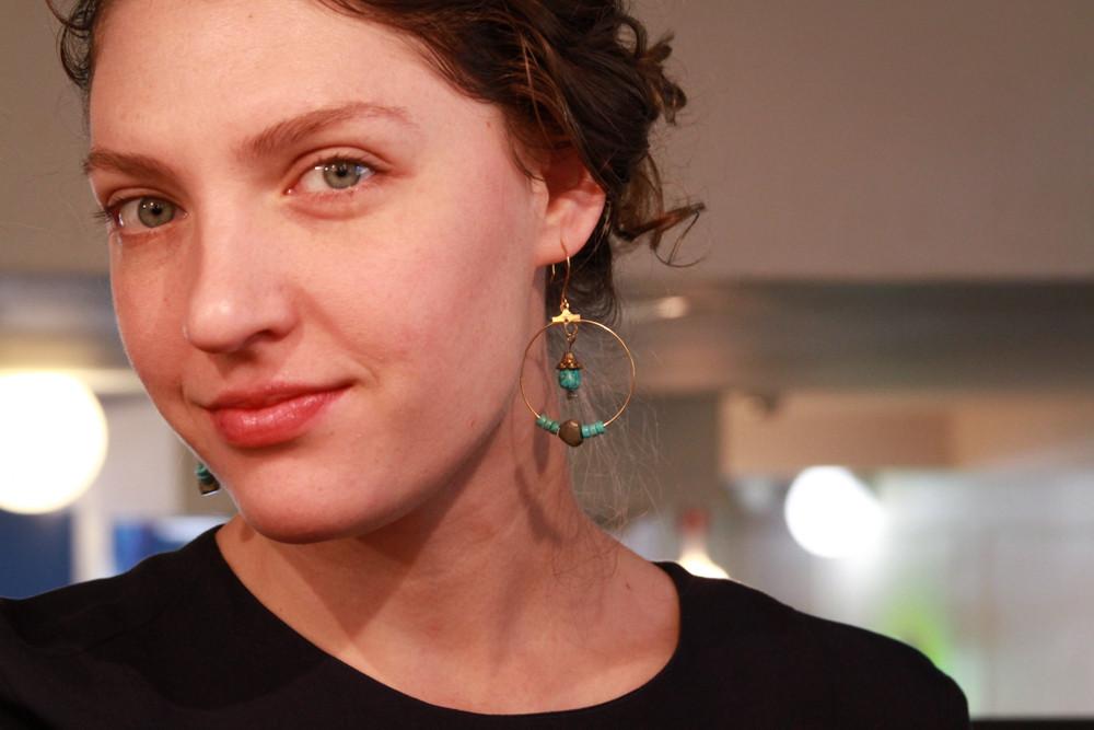 Our turquoise dangles with just a touch of fools gold and a swarovski crystal accent. Lightweight, easy to wear and with just enough sparkle to dress up any outfit without going too far over the top.
